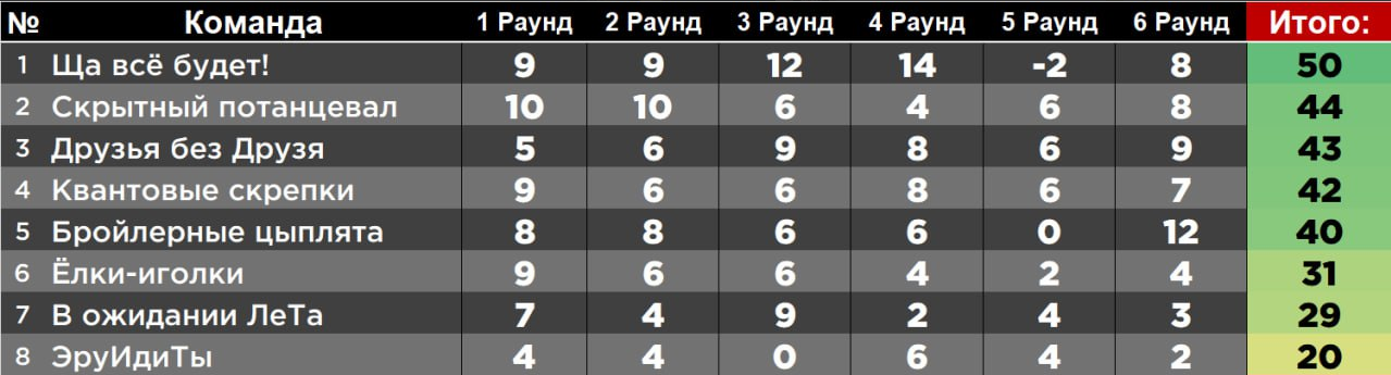 • "Ща всё будет!" показали мощнейший рывок в 3 и 4 раунде (12 и 14 баллов), но риск в 5 раунде едва не стоил им победы!